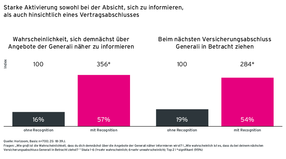 In der Analyse wurde Kategorie übergreifend insbesondere die junge Zielgruppe der 18–29-Jährigen untersucht, da diese von Versicherungsanbietern schwer zu erreichen ist. Hier zeigte sich, wie gut die Ansprache und Aktivierung über Radio funktionieren kann. Bei den jüngeren Menschen konnte sich Generali als moderne Marke erfolgreich positionieren